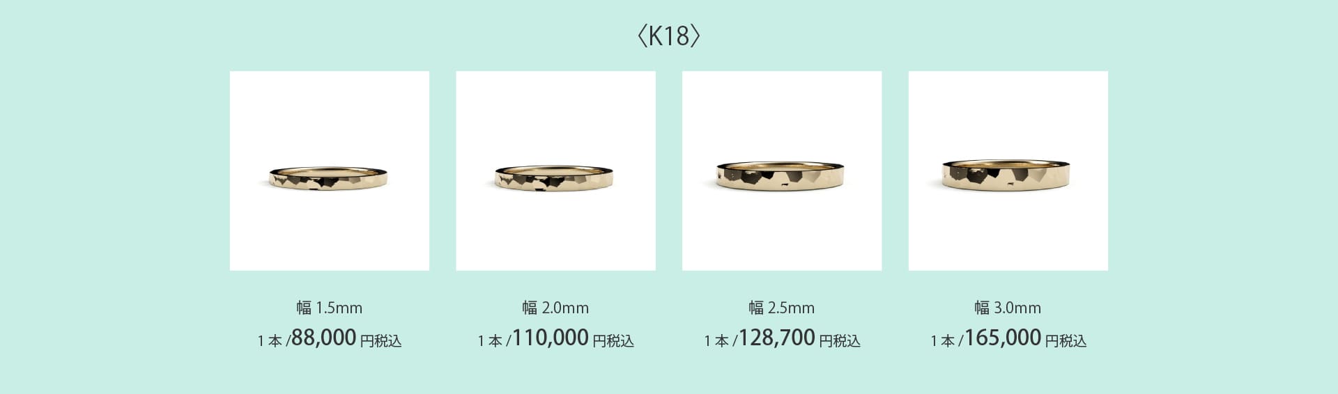 プラチナとK18を組み合わせてより個性を楽しむコンビカラーリング。ワンポイントアクセントで1/4個となる素材を足すことでより印象的な指元を表現してくれたり、ハーフ&ハーフで2つのカラーを楽しむことが出来ます。