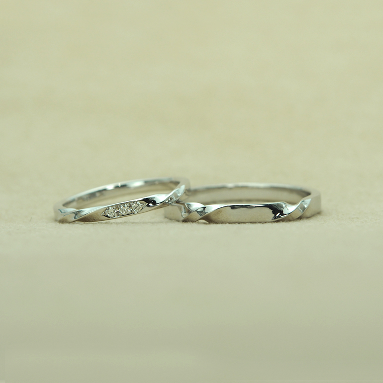 プラチナとK18を組み合わせてより個性を楽しむコンビカラーリング。ワンポイントアクセントで1/4個となる素材を足すことでより印象的な指元を表現してくれたり、ハーフ&ハーフで2つのカラーを楽しむことが出来ます。